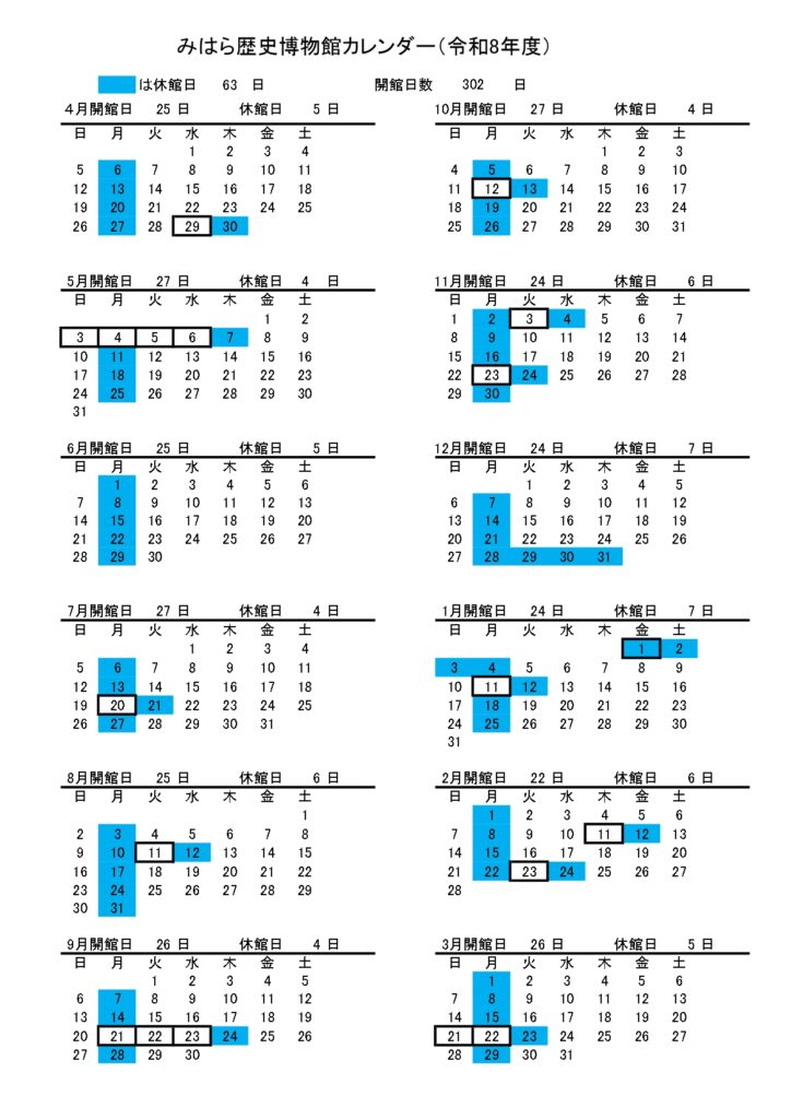 開館カレンダー(令和8年度)